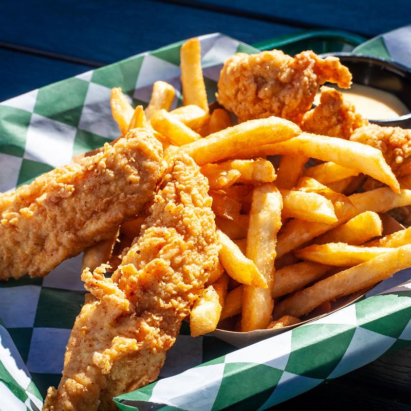 Cool spot with tons of outdoor seating and fast service. Best thing on the menu is the, hands down, the Nashville Hot Fries. Drinks were great and the fried pickles and wings were really good too but the Nashville Hot fries stole the show.